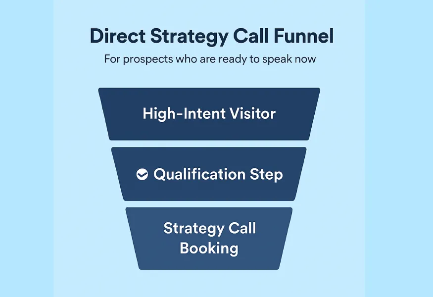 For prospects who are ready to speak now. This funnel routes high-intent visitors directly to a strategy call, with built-in qualification before the meeting.